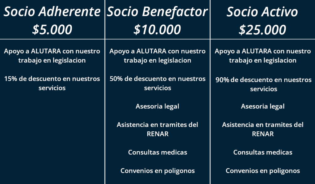 Beneficios y Categorias ALUTARA cuenta con multiples categorias con diferentes beneficios. El pago anual de cualquier categoria ofrece un descuento del 15%. únase a alutara